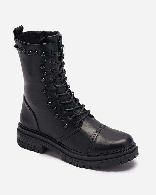 OUTLET Čierne dámske šnurovacie čižmy s perlami Gunny- Obuv