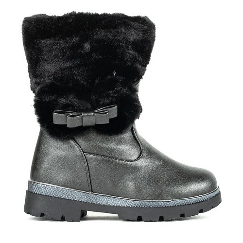 • Rozkošné čierne dievčenské snehule z ekokože s lesklou povrchovou úpravou. Zvršok je zdobený kožušinkou a mašličkou. Model je zateplený hrubou kožušinou. Poznámka: na výrobku chýbajú niektoré ozdoby.