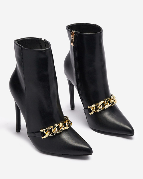 OUTLET Čierne čižmy na podpätku zdobené retiazkou Rittle- Obuv