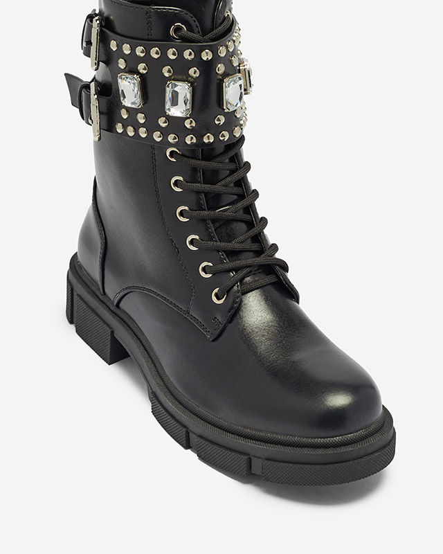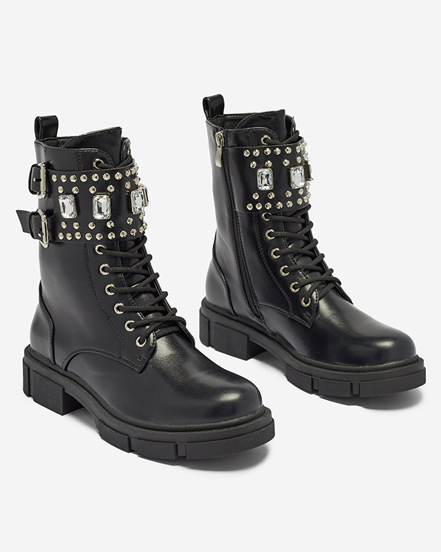 - Štýlové bagger topánky z ekokože, šnurovanie a zapínanie na zips. Model je zdobený kryštálmi a kamienkami, má gumovú podrážku a zateplenie v podobe kožušiny. ZATEPLENÉ ČIERNE ZIMNÉ TOPÁNKY BAGER BOOTS PRE ŽENY TOBRISSA