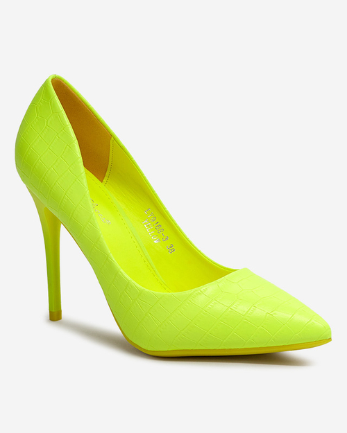 OUTLET Neónovo žlté dámske lodičky na podpätku s reliéfom Asota - Obuv