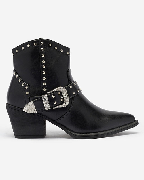 Kovbojské čižmy na podpätku s kamienkami v čiernej farbe Hally- Obuv