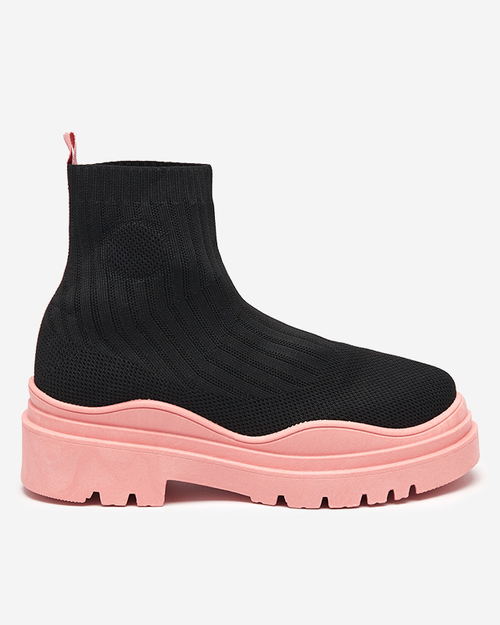 OUTLET Športové čierno-ružové dámske čižmy na plochom podpätku Yorika - Obuv