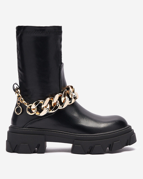 OUTLET Čierne dámske čižmy z ekokože s retiazkou Adiza - Obuv