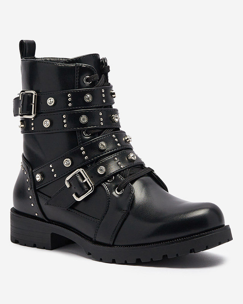 OUTLET Dámske čižmy so zirkónovými pásikmi v čiernej farbe Vaveri- Obuv
