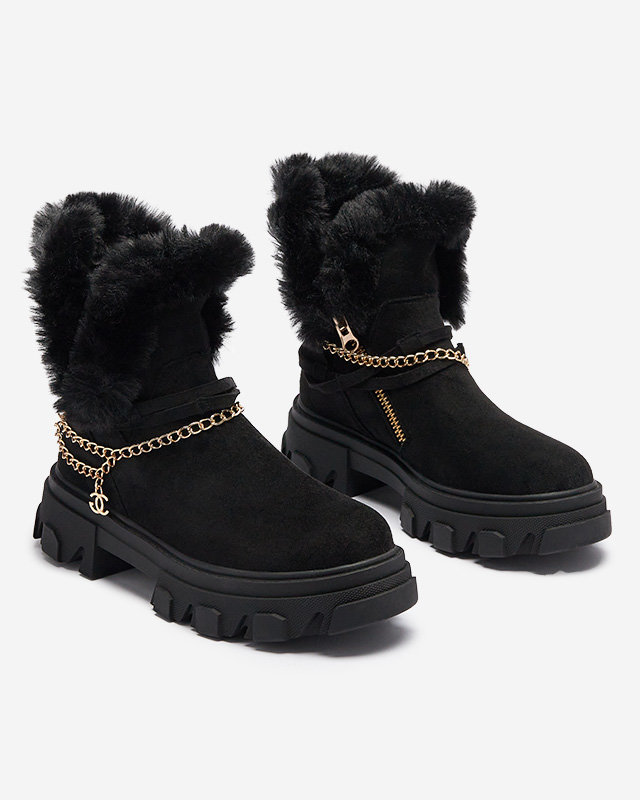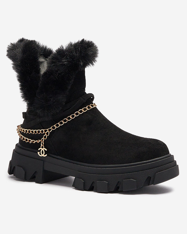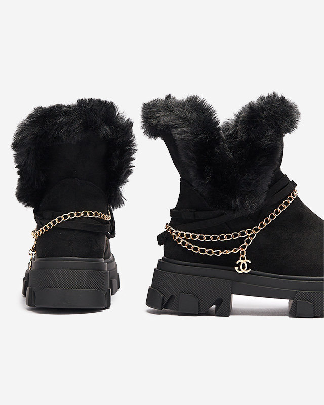 Čierne dámske čižmy z eko-semišu s retiazkou Videric - Obuv