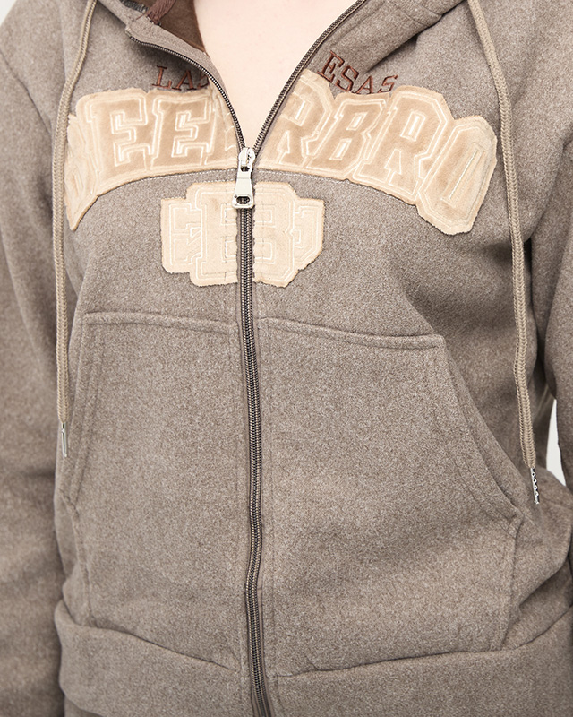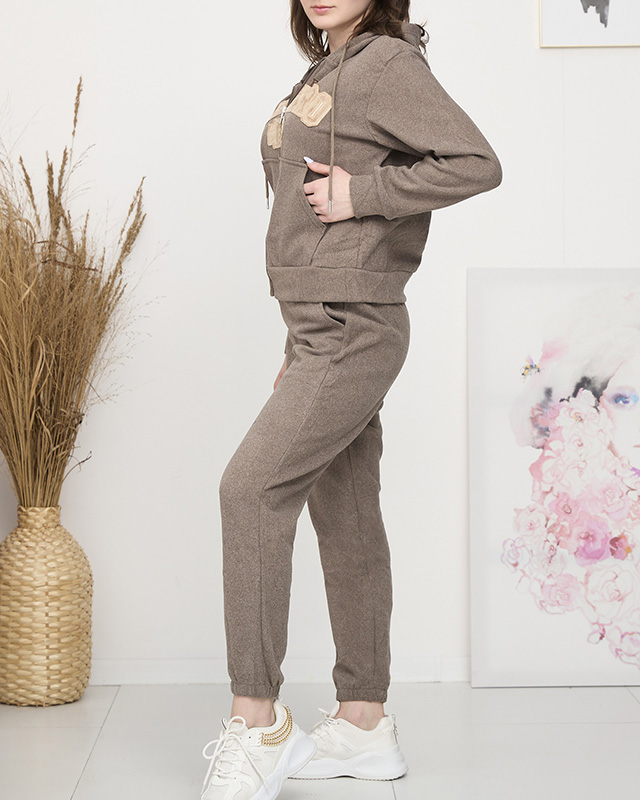 Svetlohnedá zateplená dámska mikina s nášivkou - Oblečenie