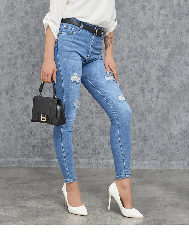 - Dámske džínsové nohavice v tvare trubky, vyrobené z bavlnenej tkaniny s oderu. Model s vysokým pásom a zapínaním na gombík a zips. Dva páry vreciek - vzadu a vpredu. UPOZORNENIE: Presnosť merania (+/-) 1 cm.