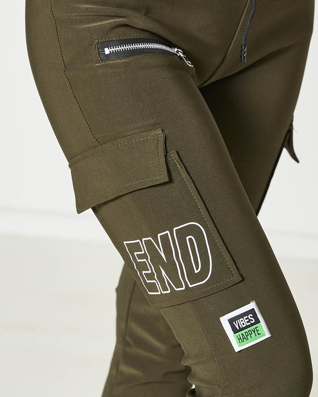 Dámske bojové nohavice s nápisom v tmavozelenej farbe- Oblečenie