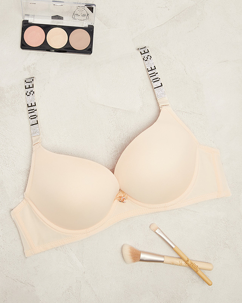 Béžová hladká vystužená podprsenka so zdobenými ramienkami - Spodné prádlo