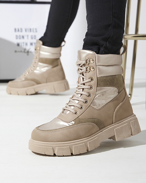 - Senzačné dámske šnurovacie čižmy a'la trapérske., zvršok je vyrobený z kombinácie matnej ekokože, eko-nubuku a tkaniny a'la olejová tkanina. Vnútro je podšité látkovým materiálom. Poznámka: výrobok má na materiáli škrabance.