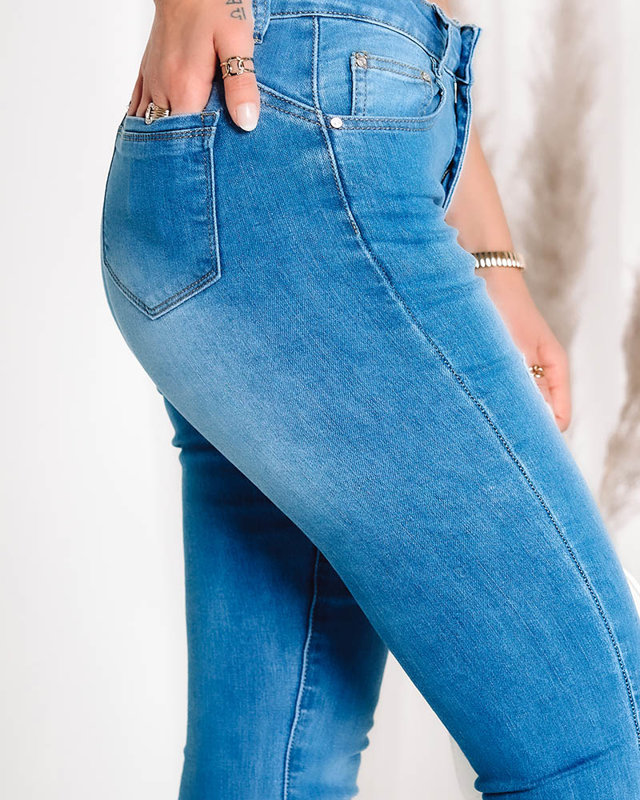 - Dámske rifle z bavlnenej tkaniny. Model s vysokým pásom a zapínaním na gombík a zips. Dva páry vreciek - vzadu a vpredu. UPOZORNENIE: Presnosť merania (+/-) 1 cm.