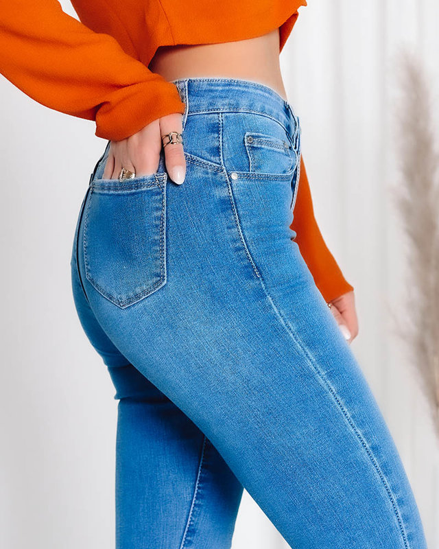 - Dámske rifle z bavlnenej tkaniny. Model s vysokým pásom, zapínanie na gombíky a zips. Dva páry vreciek - vzadu a vpredu. UPOZORNENIE: Presnosť merania (+/-) 1 cm.