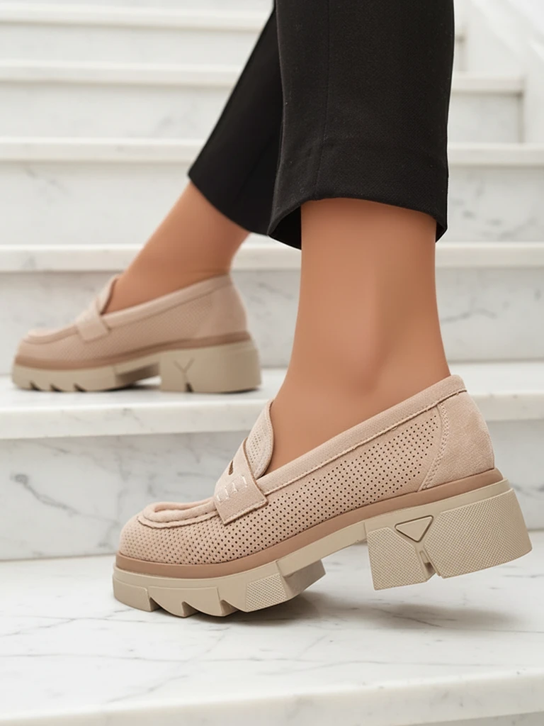 Béžové dámske ažurové mokasíny na pevnej podrážke Ejina - Obuv