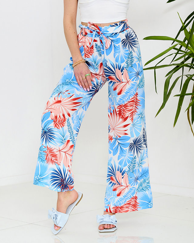 Modré dámske palazzo nohavice s kvetinovým vzorom - Oblečenie