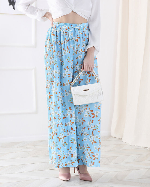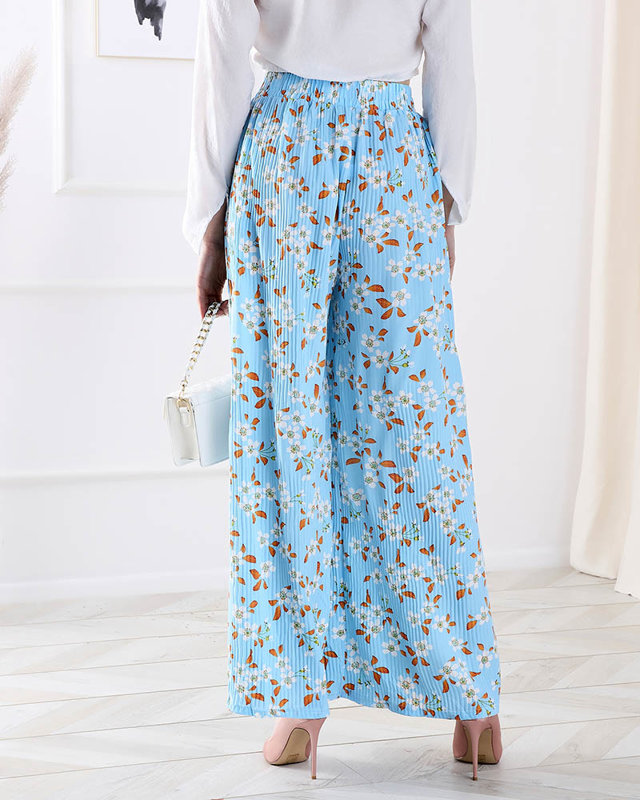 Modré dámske nohavice z kvetinovej látky - Oblečenie