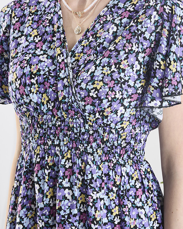 Dámske čierne dlhé šaty s fialovými kvetmi - Oblečenie