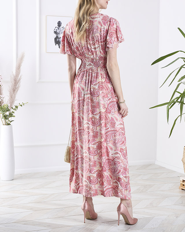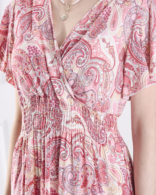 Vzorované ružové dámske midi šaty Oblečenie