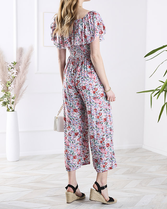 Bielo-ružový dlhý dámsky overal s kvetinovým vzorom - Oblečenie