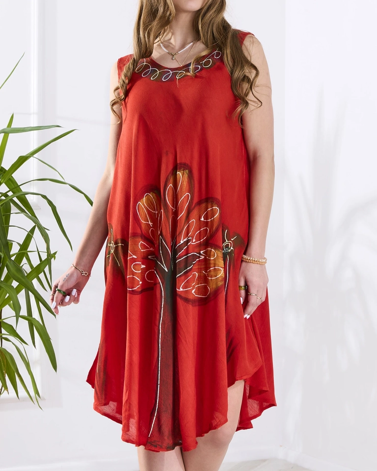 Dámske červené šaty s kvetinovým motívom - Oblečenie