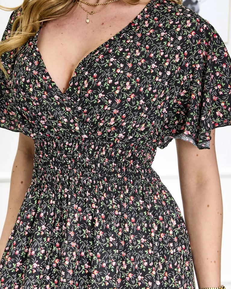 Kvetované čierne dámske maxi šaty Oblečenie