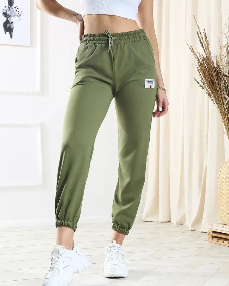 - Dámske tepláky s 2 vreckami, majú elastický pás a spodnú časť nohavíc. Nohavice sa v páse zaväzujú, na boku majú ozdobnú nášivku. Nohavice sú k dispozícii v mnohých farebných variantoch. UPOZORNENIE: Presnosť merania (+/-) 1 cm.