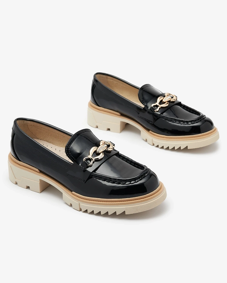 Čierne lakované dámske mokasíny s retiazkou Sotella - Obuv
