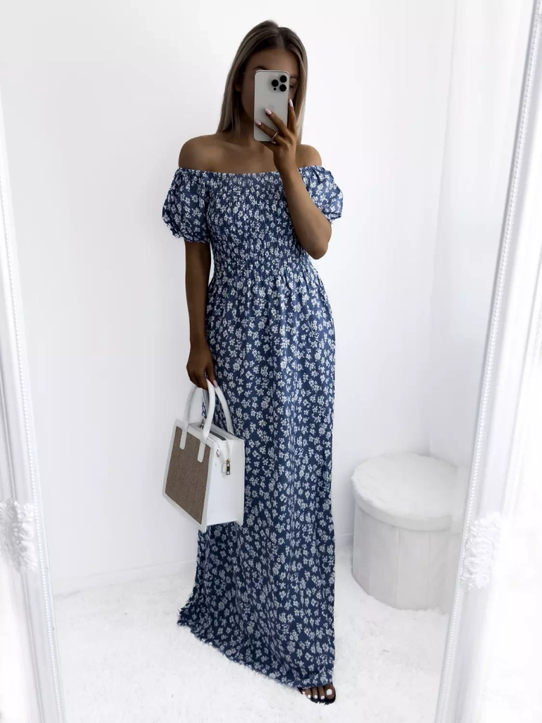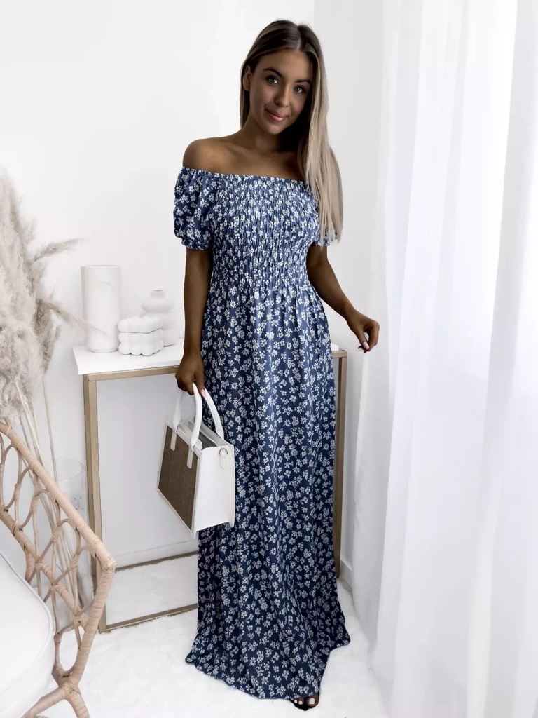 Modré dámske maxi šaty s kvetinovým vzorom - Oblečenie