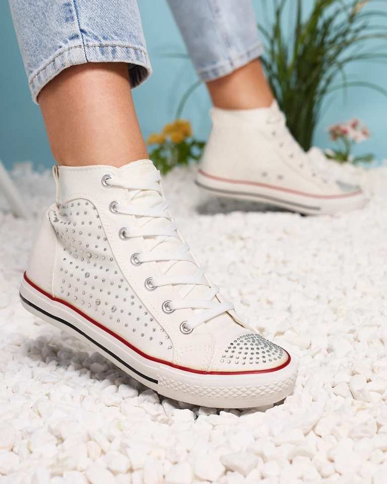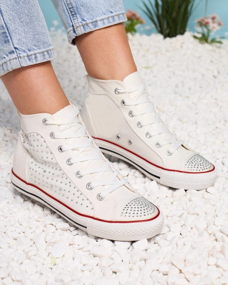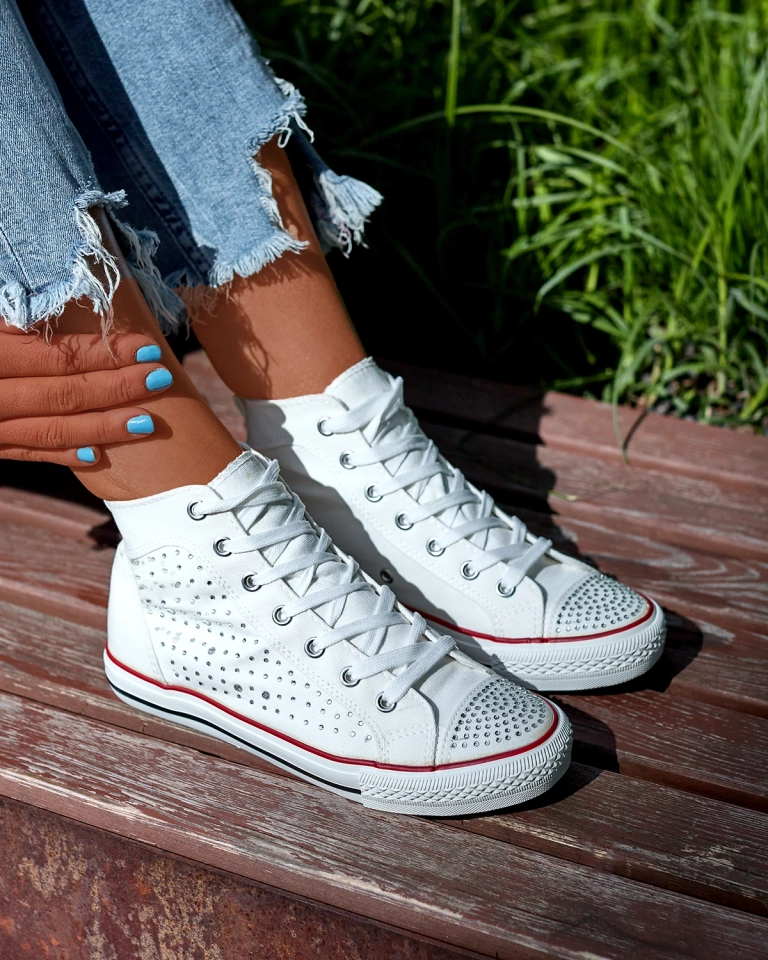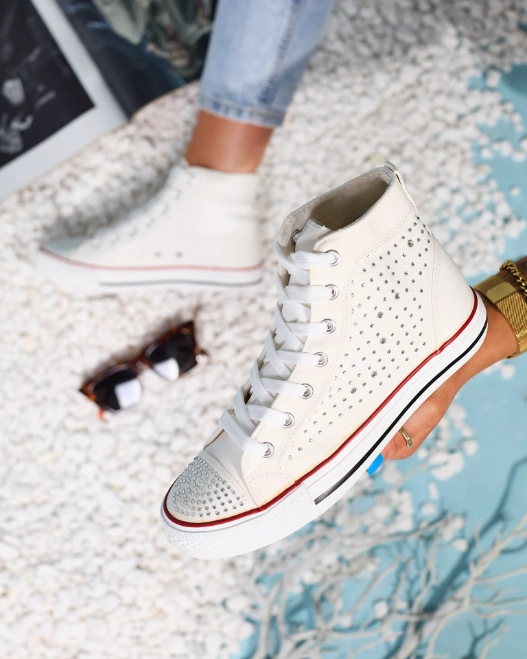 Biele vysoké tenisky so zirkónmi Totulu- Obuv