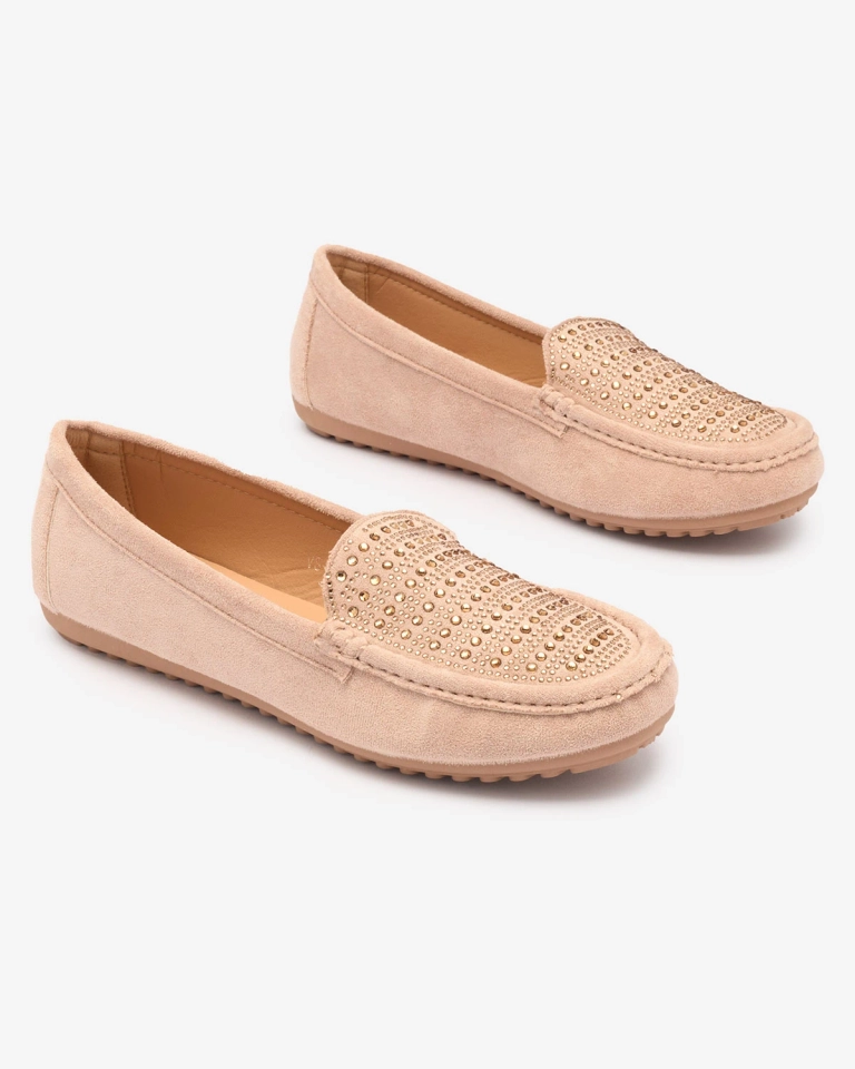 Béžové dámske mokasíny so zirkónmi Bretika - Obuv