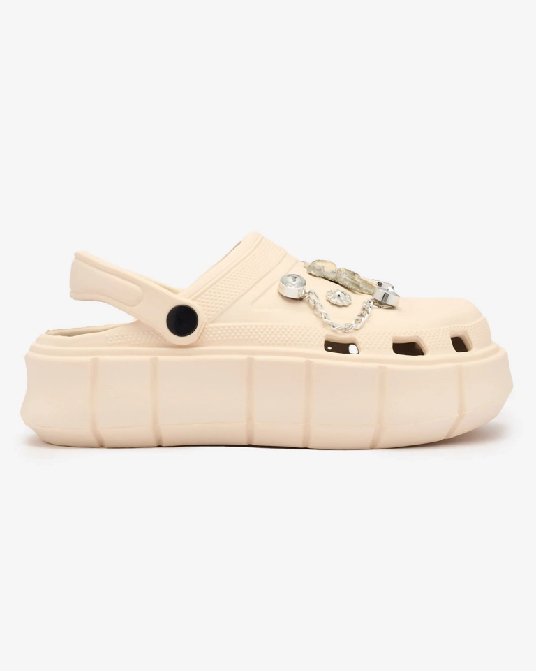 • Krásne dámske gumené žabky na hrubšej podrážke. Ažurový zvršok zdobený zirkónmi. Ideálna voľba na doma, záhradu aj na dovolenku!