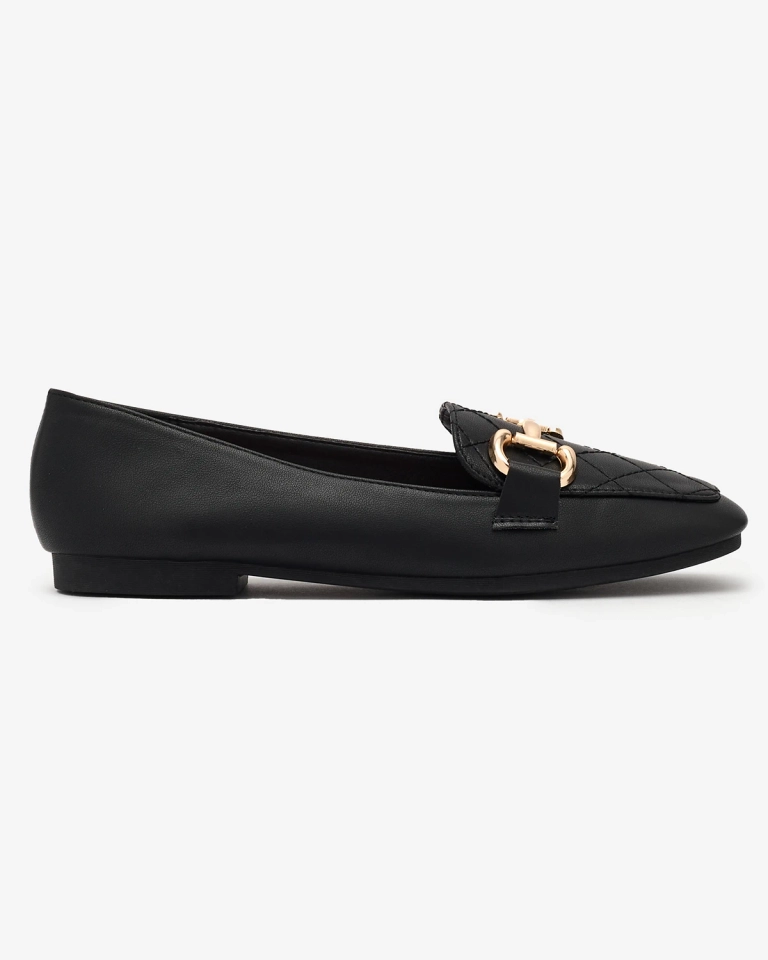 Royalfashion Čierne dámske prešívané mokasíny so zlatým zdobením Wetifa