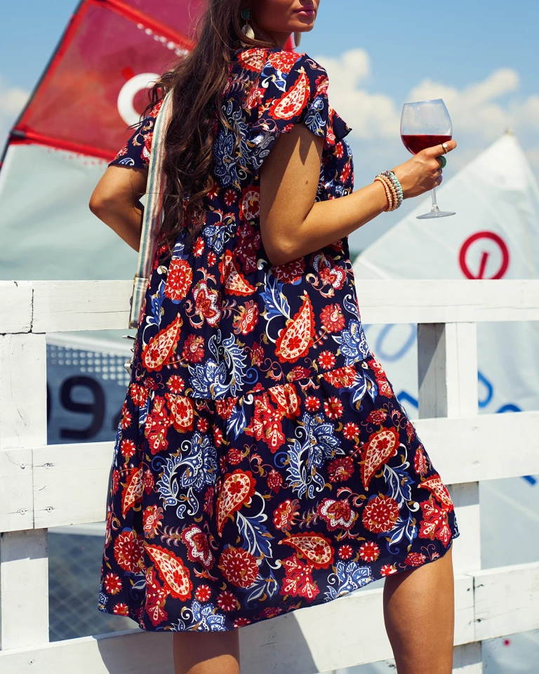 - Krásne dámske farebné šaty, vyrobené z ľahkej viskózovej tkaniny. Model s kvetinovým vzorom má srdiečkový výstrih a krátke rukávy. Ideálne na horúce letné dni. UPOZORNENIE: Presnosť merania (+/-) 1 cm.