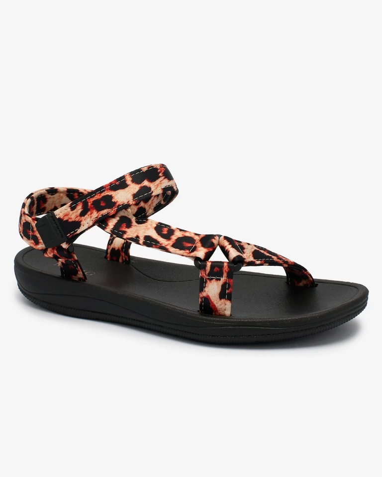 - Dámske sandále z textilného materiálu zdobené leopardím vzorom. Pohodlná plochá, gumová podrážka. Obuv sa zapína na suchý zips. Ideálne na každodenné nosenie!