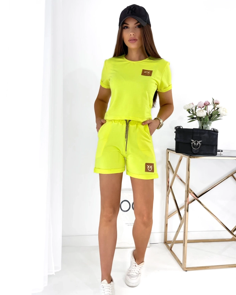 Royalfashion Neónovo žltá dvojdielna dámska športová súprava s nášivkami