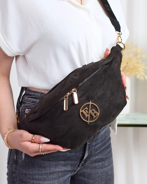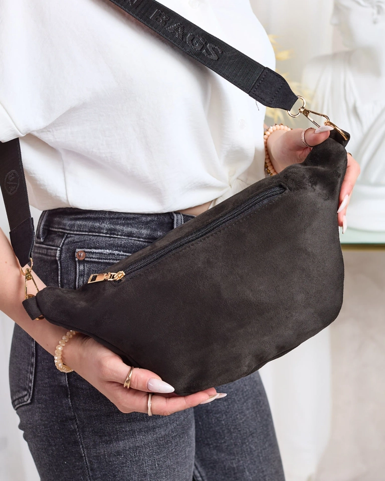 Royalfashion Dámske semišové obličky z ekokože v čiernej farbe