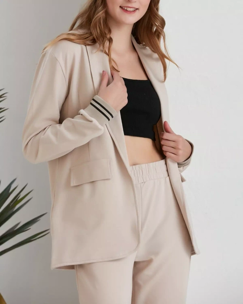 - Štýlový dámsky teplákový komplet z príjemného materiálu. Bunda v športovom štýle bez zapínania. Nohavice s elastickým pásom a vsadenými vreckami na prednej strane. Povinná výbava do vášho šatníka! UPOZORNENIE: Presnosť merania (+/-) 1 cm.
