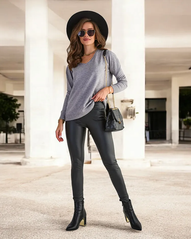 Royalfashion Šedý dámsky sveter so srdiečkovým výstrihom