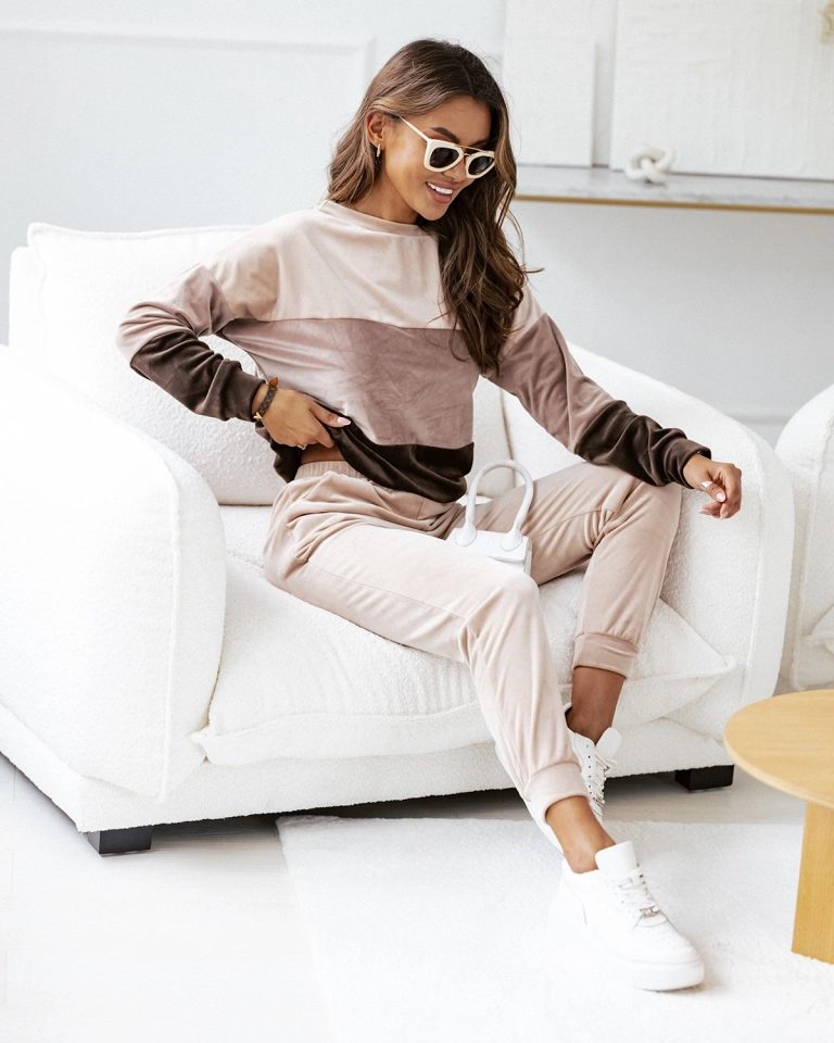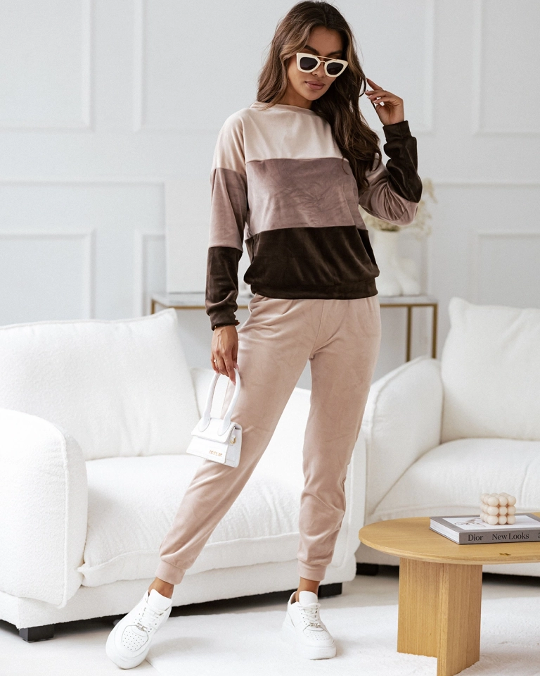 Royalfashion Béžová dámska pruhovaná mikinová súprava