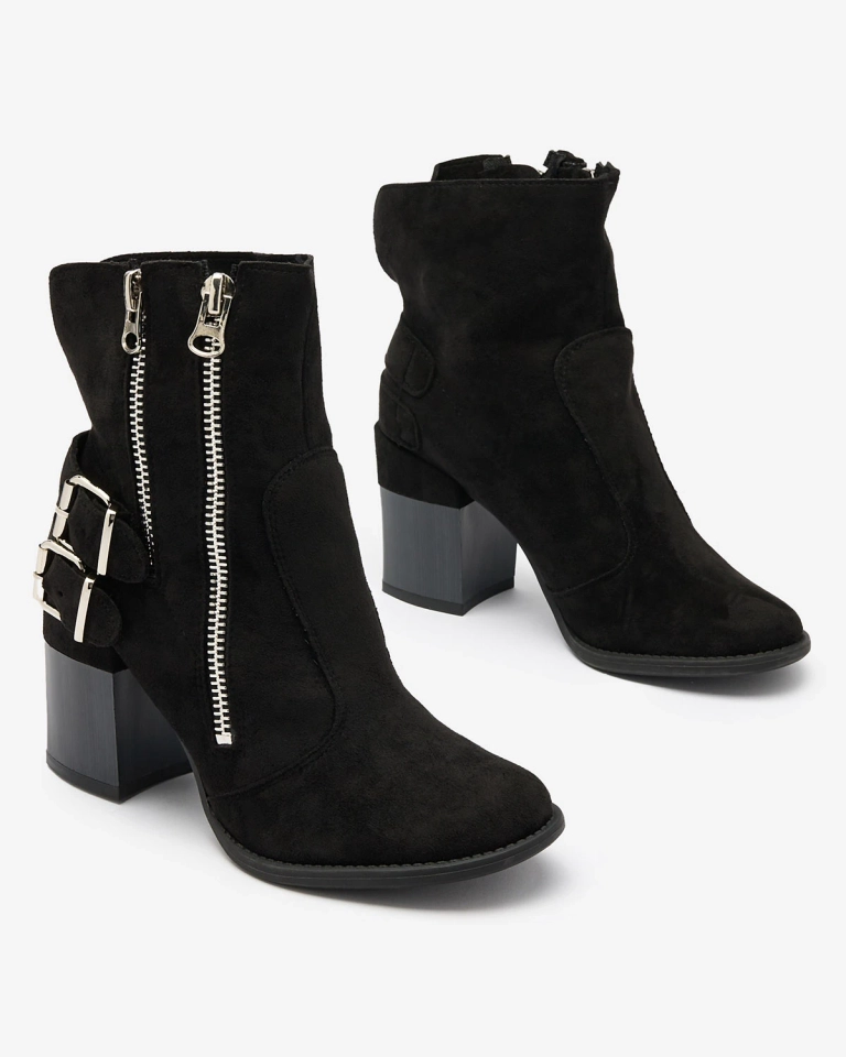 - Štýlové dámske čižmy na podpätku, zvršok zdobený prackami a vyrobený z eko-semišu, vnútorná textilná stielka. Model sa zapína na zips na vnútornej strane. Dámske čižmy FEIRRGO NEVYŠŠIAHANÉ