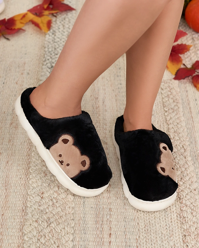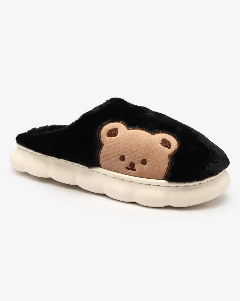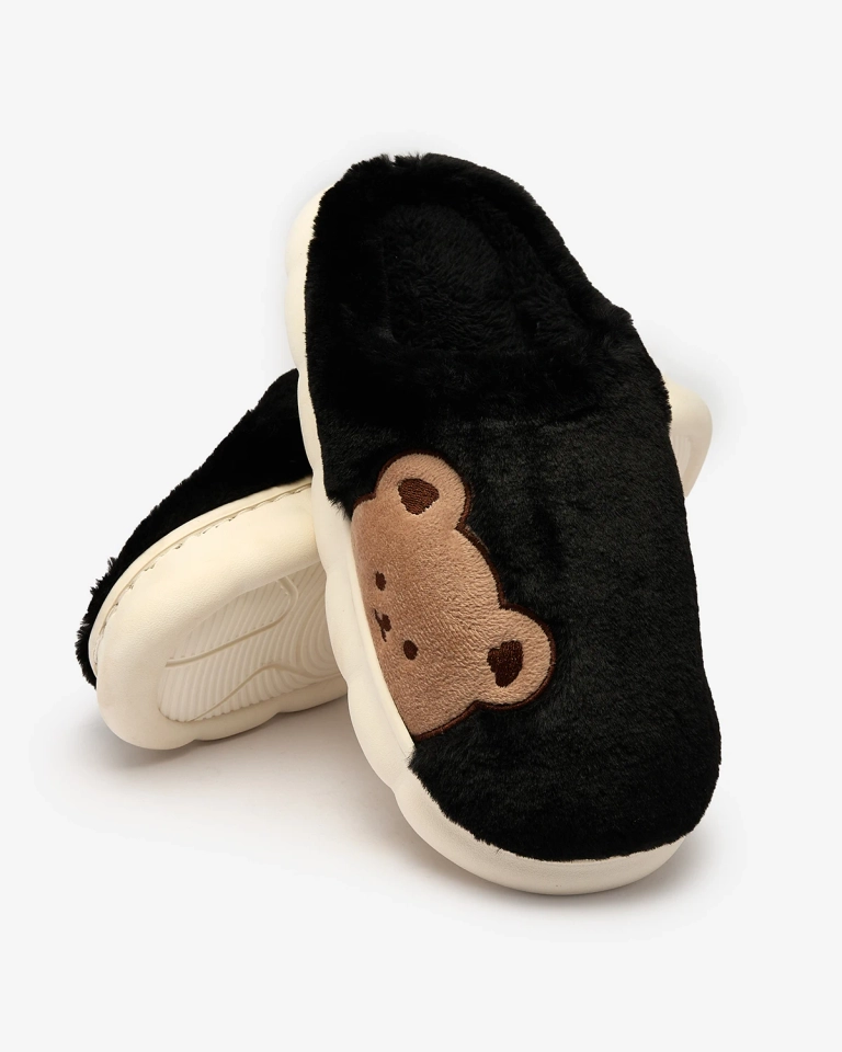 Royalfashion Damskie futrzane kapcie z misiem w kolorze czarnym Fetemes