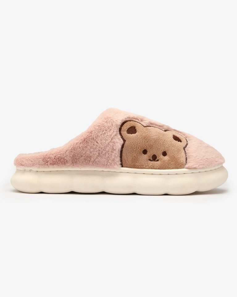 Royalfashion Dámske kožušinové papuče s medvedíkom v ružovej farbe Fetemes