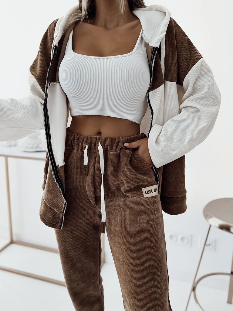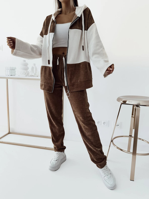 Royalfashion Dámska hnedá pruhovaná športová súprava