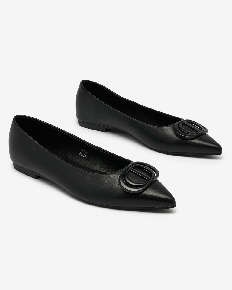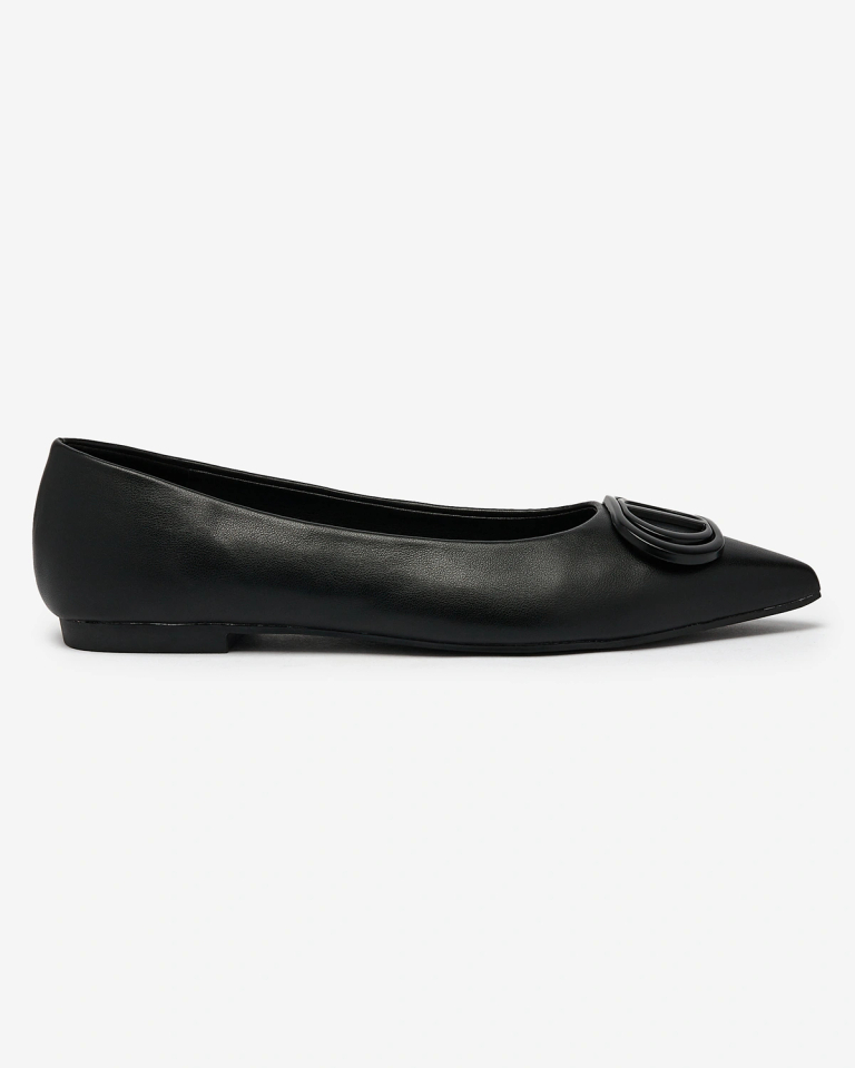 Royalfashion Čierne dámske baleríny so špicatou špičkou a ozdobou na nose Manixy