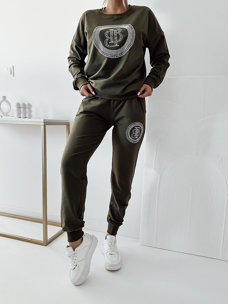 Royalfashion Tmavozelená dámska mikinová súprava so zirkónmi