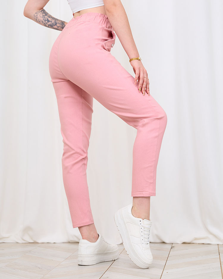 Royalfashion Ružové dámske nohavice z rovnej látky