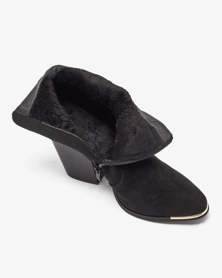 - Klasické dámske čižmy na stabilnom podpätku s mandľovou špičkou. Materiál zvršku je ekokoža, stred je zateplený mäkkou kožušinou. Ideálny základ pre mnohé každodenné looky! DÁMSKE ZATEPLENÉ BOTY DIVA CHARMS