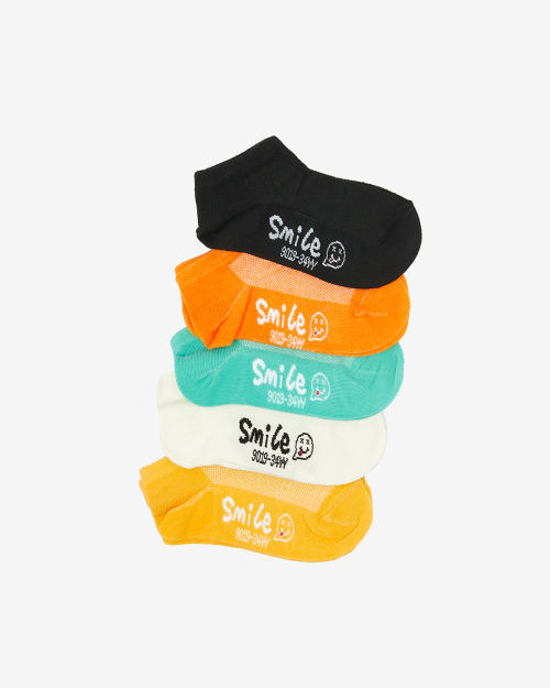 - Sada detských ponožiek 5 ks, vyrobené z príjemného bavlneného materiálu s farebnými nápismi. Dokonale sa prispôsobia chodidlu, poskytujú voľnosť pohybu a každodenné pohodlie.