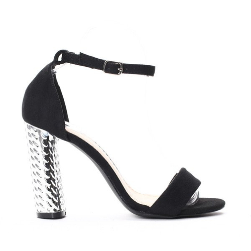 Czarne sandały na srebrnym obcasie Aurora - Obuwie