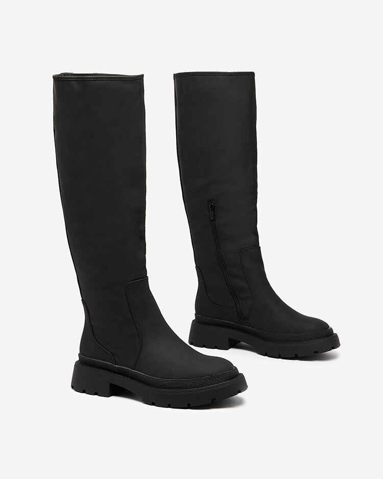 Royalfashion Matné čierne dámske čižmy nad kolená Ikemis